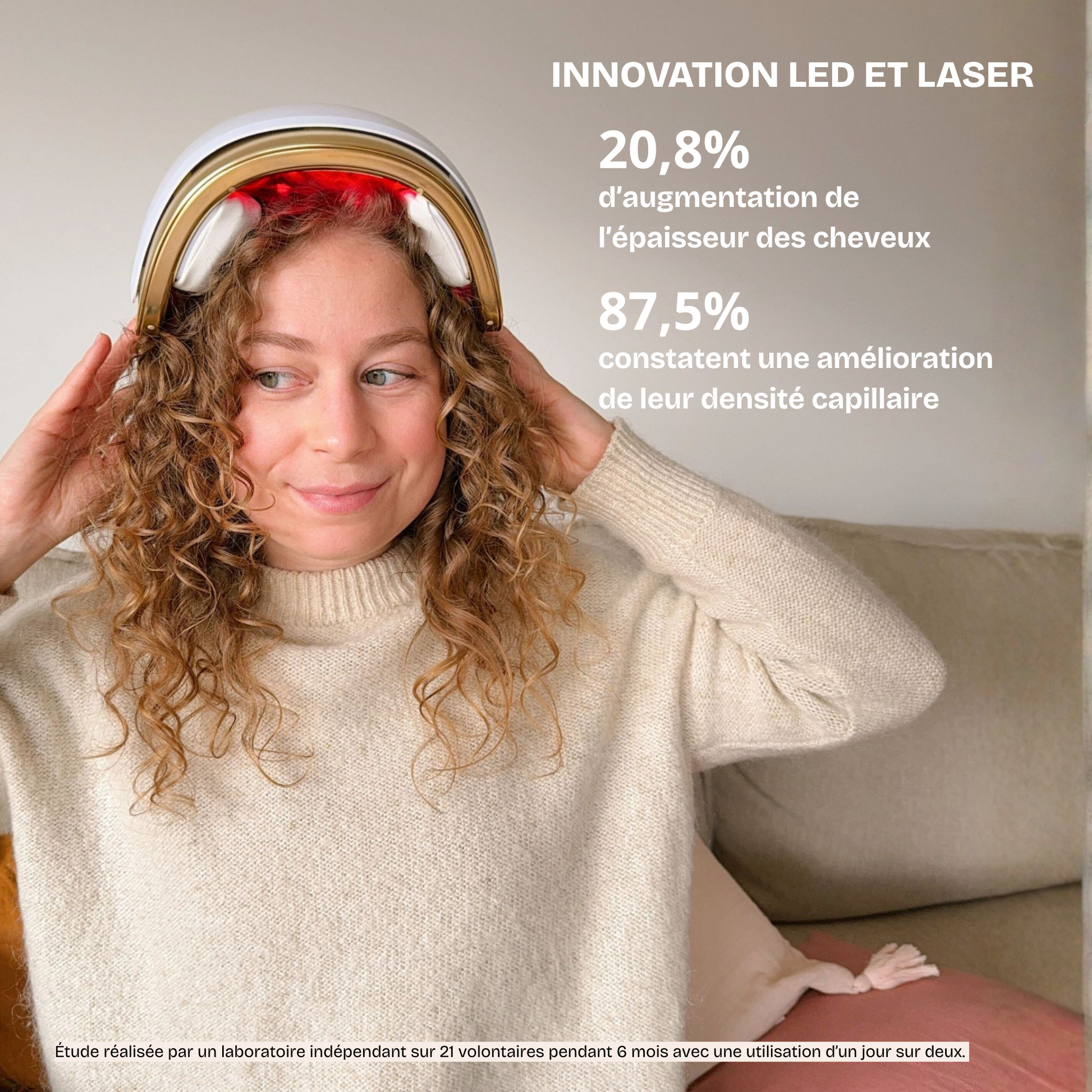 Sa combinaison de technologies LED et Lasers LLLT (Low Level Laser Therapy) permet de maximiser l’efficacité de la repousse des cheveux. Les 51 Lasers présents dans le Casque Cheveux Beauté et Repousse stimulent les follicules pileux, contribuant ainsi à la croissance des cheveux bouclés. Ses 69 LED permettent d’améliorer l’environnement naturel du cuir chevelu, afin de réunir des conditions idéales pour une repousse saine.