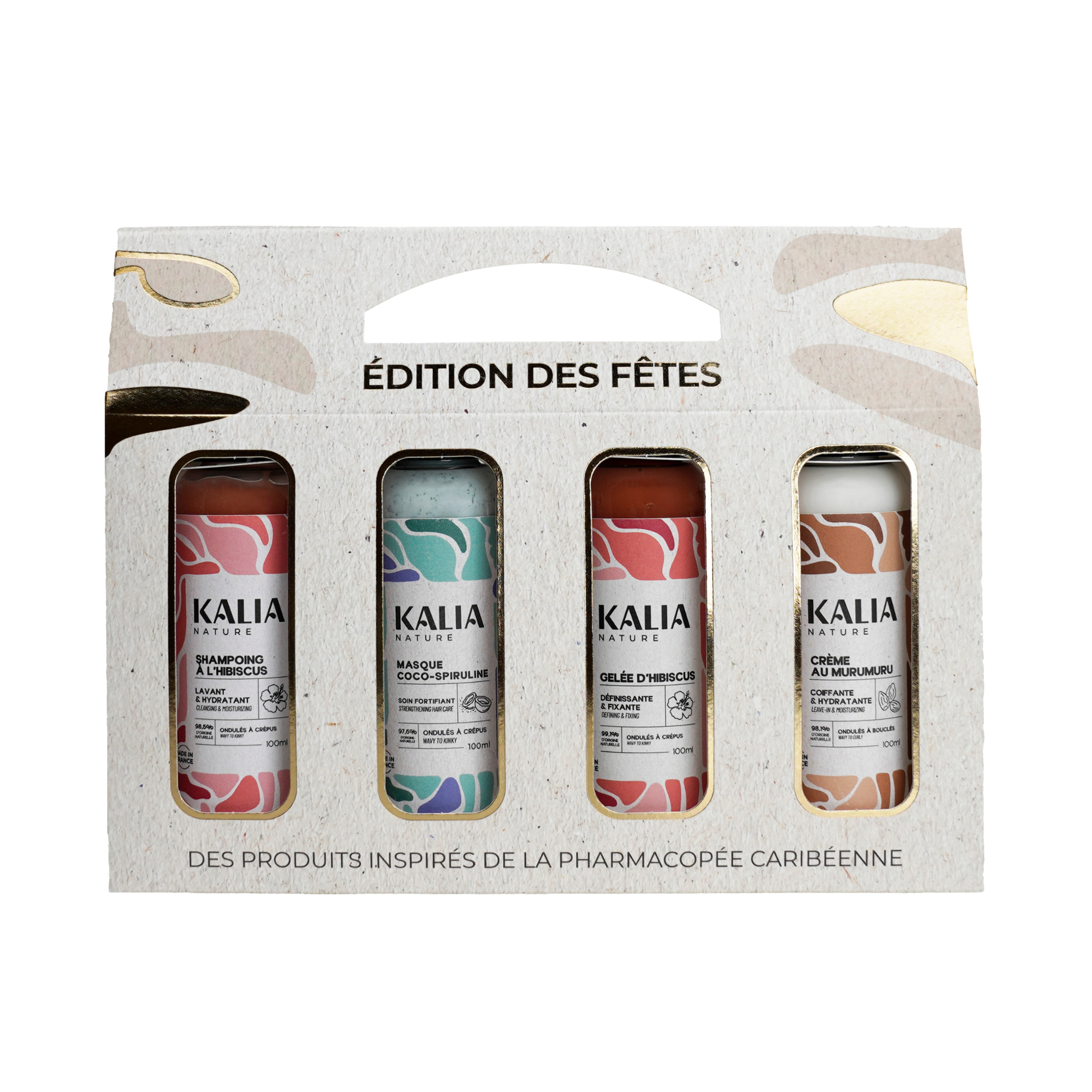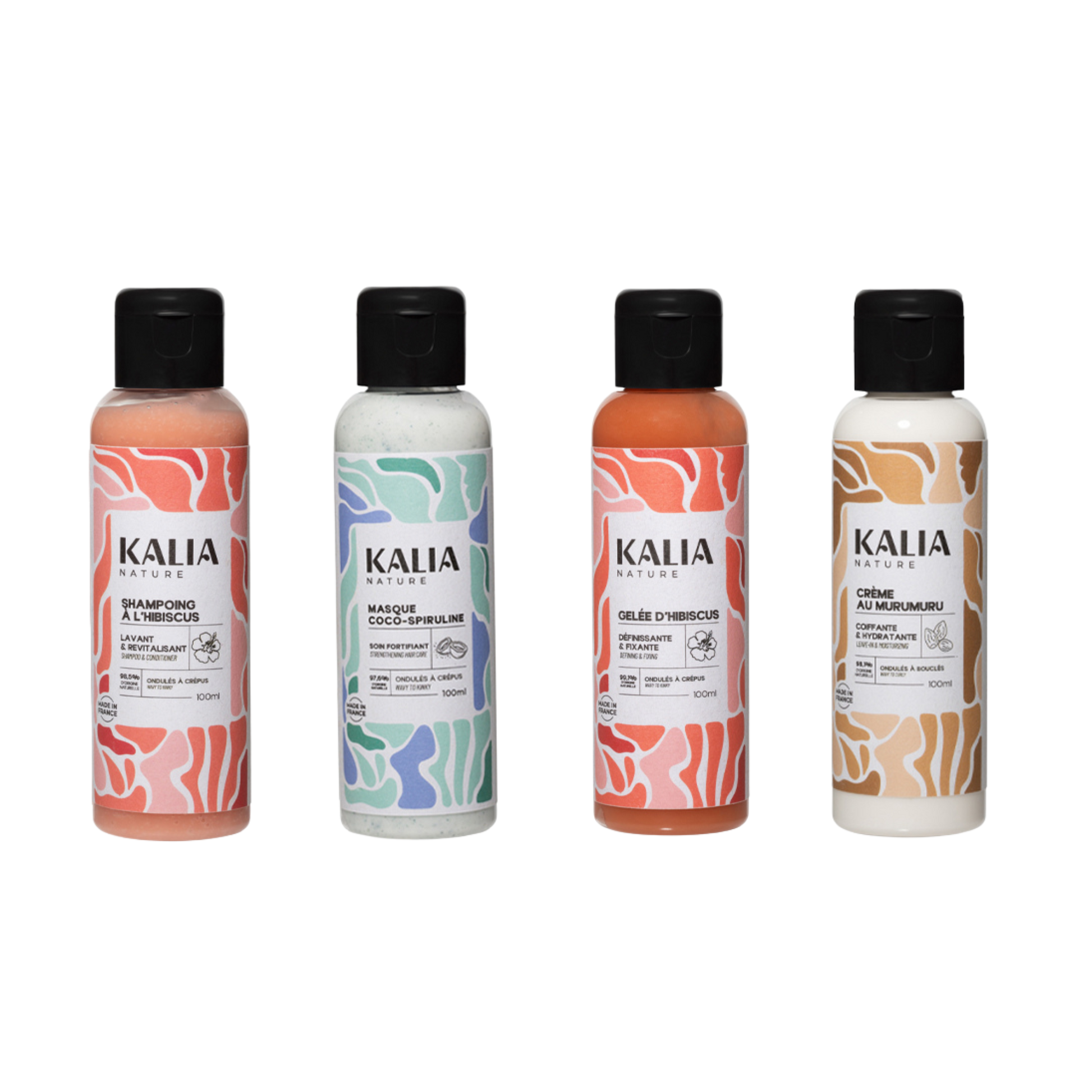 Shampoing à l'Hibiscus: Aqua (Water), Glycerin, Decyl Glucoside*, Lauryl Glucoside*, Agave Tequilana Stem Extract**, Prunus Amygdalus Dulcis (Sweet Almond) Oil*, Xanthan Gum**, Hibiscus Sabdariffa (Hibiscus) Seed Oil*, Sucrose Laurate*, Benzyl Alcohol, Parfum*, Ricinus Communis (Castor) Seed Oil**, Citric Acid*, Linalyl Acetate, Linalool, Citrus Aurantium Flower Oil*, Limonene*, Dehydroacetic Acid, Hibiscus Sabdariffa (Hibiscus) Flower Powder**, Juniperus Virginiana Oil*, Citronellol, CI 77491 (Red Iron Oxide) * Ingrédients d’origine naturelle ** Ingrédients issus de l’agriculture biologique 98,5% d’ingrédients d’origine naturelle