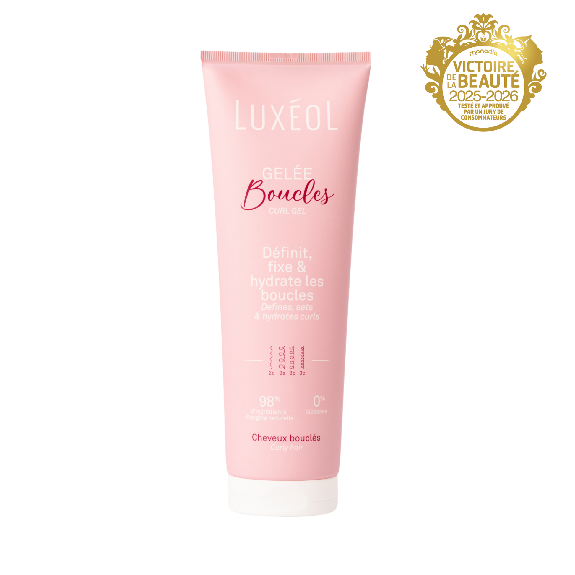 La Gelée Boucles de Luxéol est un produit coiffant sans rinçage conçu pour fixer et gainer les boucles de types 2C (ondulés), 3A et 3B (bouclés) et 3C (frisés). Elle maintient l’hydratation au cœur de la fibre capillaire, sans alourdir les longueurs. Sa formule favorise la définition et le rebond des boucles, sans effet carton. Elle protège les cheveux contre les frisottis, l’humidité et les agressions extérieures.