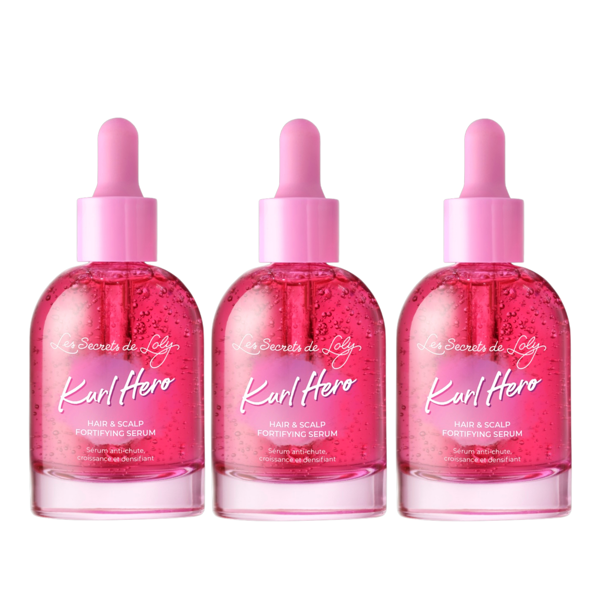 Le Sérum Anti-Chute Kurl Hero est un soin capillaire destiné à lutter contre la chute réactionnelle liée au stress capillaire. Il s’agit de l’ensemble des agressions chimiques, thermiques, environnementales et émotionnelles répétées, qui fragilisent le cheveu dès la racine. Sa texture douce et gélifiée pénètre rapidement dans le cuir chevelu, sans laisser d’effet gras ni collant.
