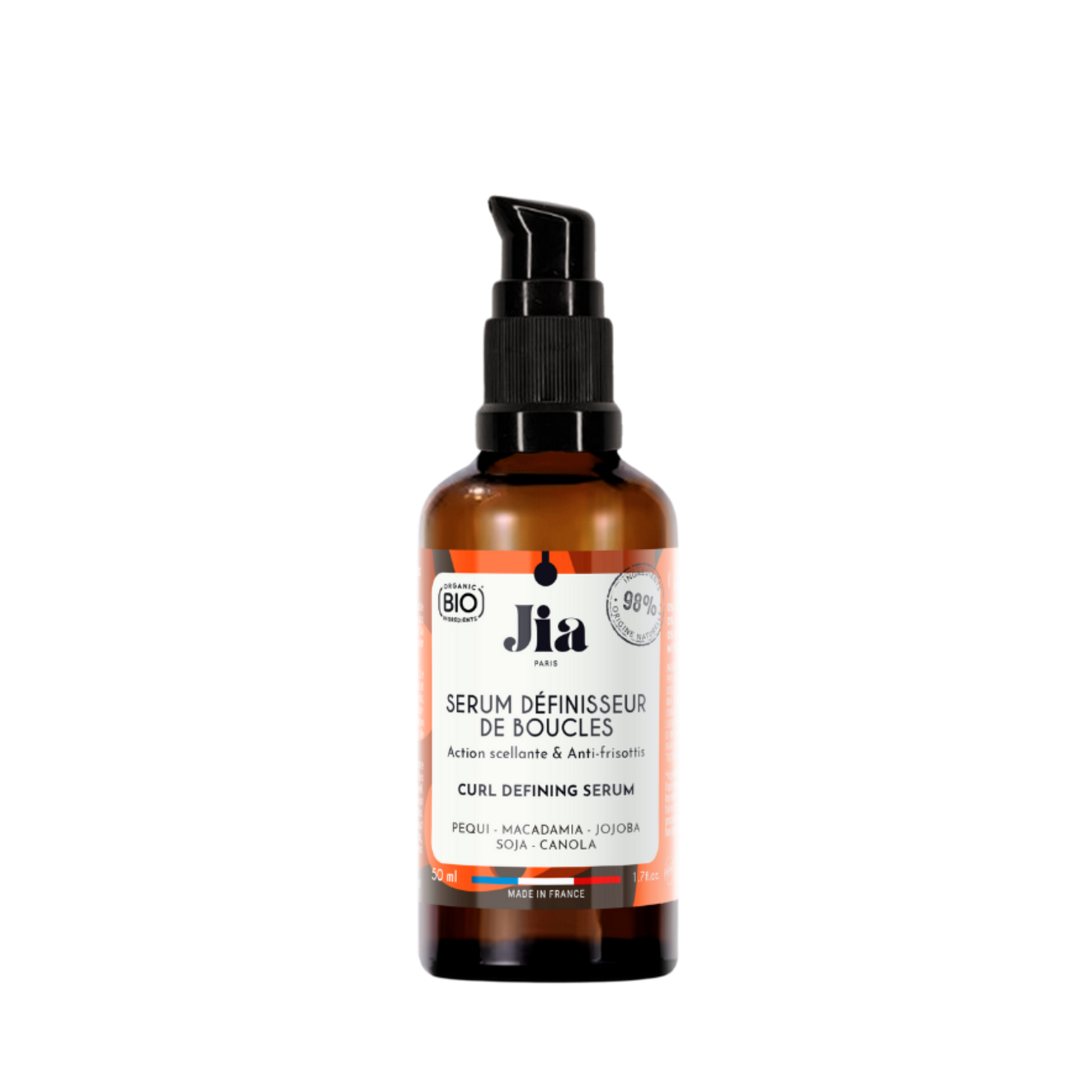 Le Sérum Définisseur de Boucles de la marque Jia Paris est un soin léger sans rinçage qui apporte nutrition et définition aux boucles. Sa texture légère prend soin de la fibre capillaire sans alourdir les longueurs. Le sérum permet de sceller l’hydratation au cœur du cheveu en fin de routine, et limite l’apparition de frisottis. Sa formule est un concentré d’huiles végétales et de vitamines pour des boucles nourries, sublimées et protégées.