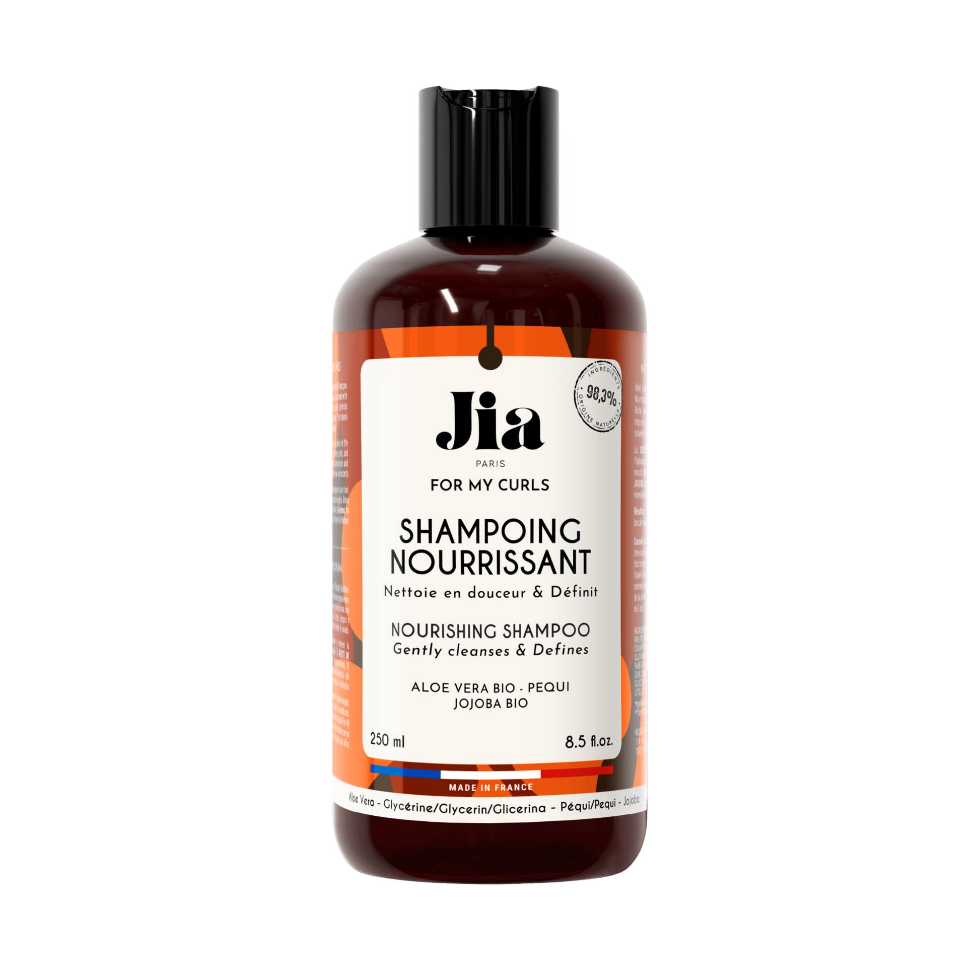 Le Shampoing Nourrissant « for my curls » de Jia Paris nettoie le cuir chevelu avec une douceur optimale. Il ne contient pas de sulfates pour préserver la barrière protectrice du cheveu lors du lavage. Sa formule est enrichie en actifs végétaux humectants et nourrissants. Elle aide ainsi à optimiser la rétention de l’hydratation au cœur de la fibre capillaire dès l’étape du shampoing.