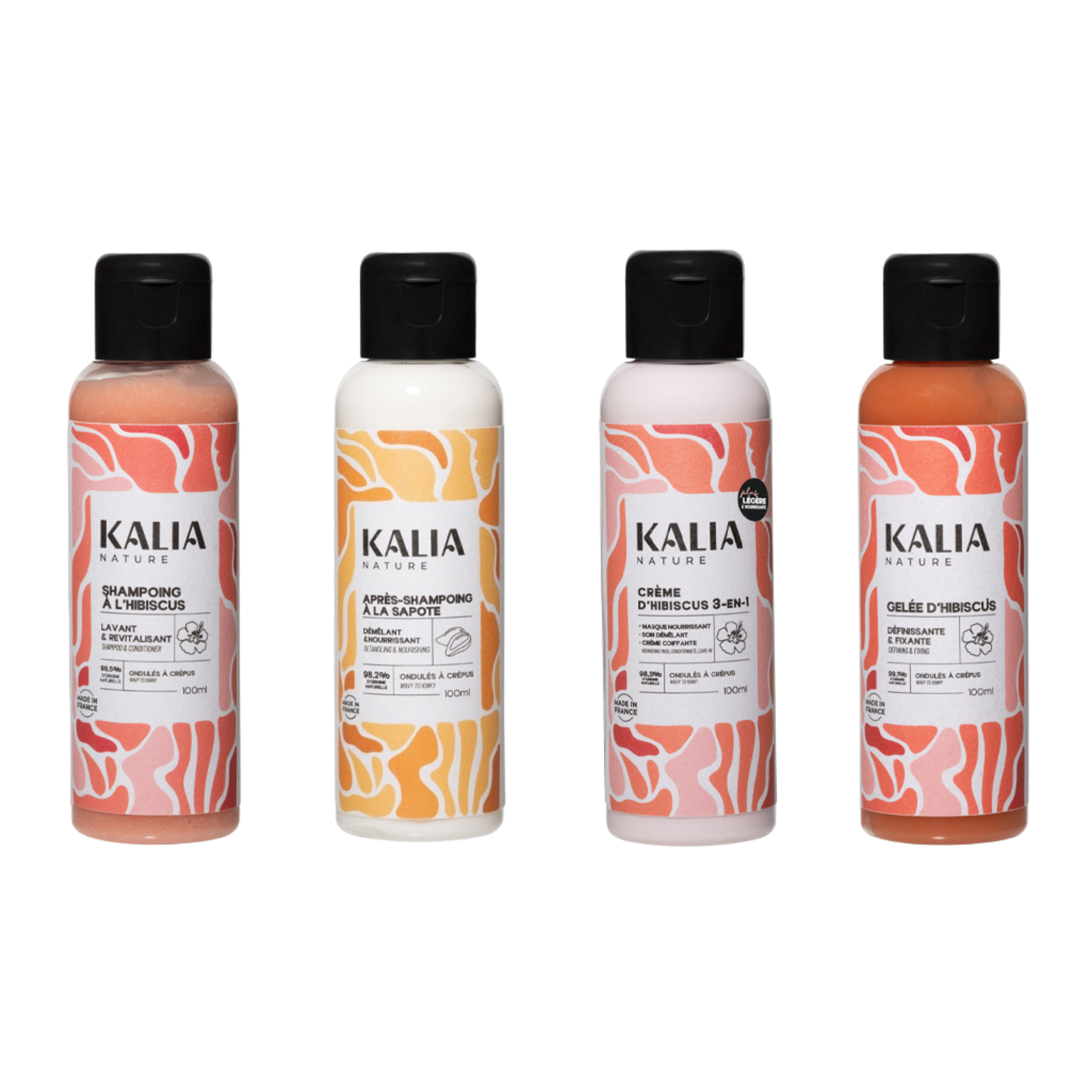 - Le Shampoing à l’Hibiscus (100ml) : nettoie en douceur les cheveux ondulés, bouclés, frisés et crépus. Il maintient l’équilibre du cuir chevelu et préserve son hydratation naturelle. Il revitalise les longueurs sans les alourdir et gaine la fibre capillaire. Sa formule est enrichie en agents lavants doux et en actifs hydratants et nourrissants. Elle redonne vie aux cheveux ternes et cassants, et leur apporte de la douceur et de la brillance.